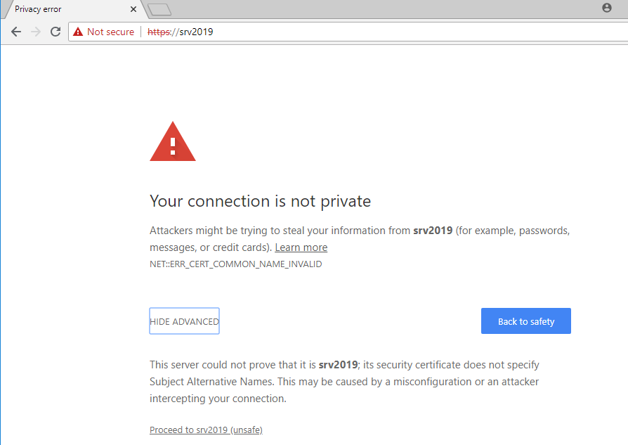 You open the browser and enter the URL https://<servername> , only to be greeted with the following error: